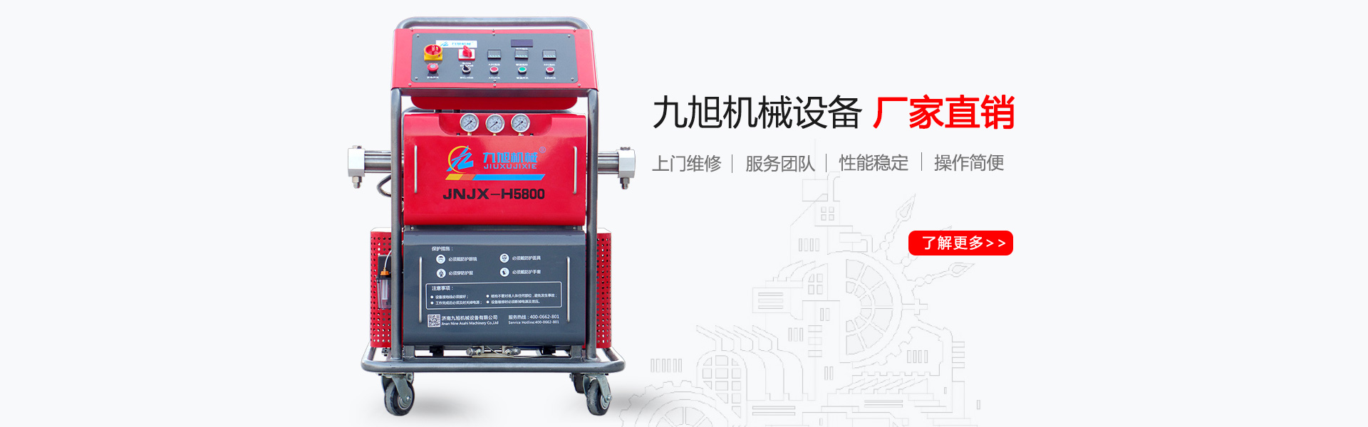 山東九旭機(jī)械科技有限公司歷經(jīng)十幾年的發(fā)展,已成長為聚氨酯設(shè)備行業(yè)頗具實力的設(shè)備制造廠家之一。企業(yè)主要產(chǎn)品:聚氨酯噴涂機(jī)、聚氨酯發(fā)泡機(jī)、聚氨酯澆注機(jī)、聚脲噴涂機(jī)等,關(guān)于設(shè)備配件(聚氨酯高壓噴槍、槍嘴、加熱管道、料塊、摩擦副、增壓泵、混合式、提料泵等)也是堅持最好的質(zhì)量服務(wù)用戶,并承接:外墻保溫、冷庫保溫發(fā)泡等工程...